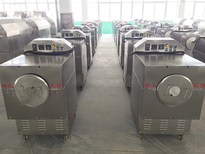 该机型使用三相电压 一锅炒板栗30斤左右 机器只需设定好温度和档位无需人工干预 自动炒制 炒熟自动警报 只需人工一键出锅 方便快捷 炒出板栗色泽油亮卖相好 适合店面商超等使用
